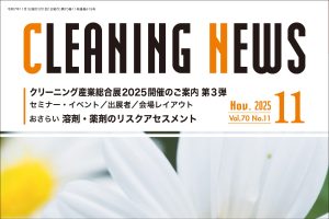 お知らせ 一覧 2025年11月1日|ニュースリリース クリーニングニュース2025年11月号読みどころ<「組合員専用ログインページ」更新> 2025年10月31日|ニュースリリース 第2回クリニシュラン(第2回CLEANICHELIN)クリーニング産業総合展2025会場での開催のお知らせ 2025年10月30日|ニュースリリース 令和7年度厚生労働大臣表彰・中央会理事長表彰クリーニング業界は24名が受賞 2025年10月20日|衣料管理情報(クリーニング事故・注意情報) 衣料管理情報(クリーニング注意情報)「スリット糸(ラメ糸)の光沢の消失」 2025年10月15日|ニュースリリース 技術情報2025年10月号 発行[特集:クリーニング師の役割 衛生的で質の高いワイシャツクリーニング③] 2025年10月10日|ニュースリリース CLV21関連情報 クリーニング産業総合展2025クリーンライフビジョン21 in Tokyo出展者・開催企画 発表 2025年10月3日|ニュースリリース 第40期クリーンライフみのりの箱募金贈呈式を開催一都六県の社会福祉施設のため厚生労働大臣に70万円を渡す 2025年10月1日|ニュースリリース クリーニングニュース2025年10月号読みどころ<「組合員専用ログインページ」更新> 2025年9月29日|9月29日「クリーニングの日」関連情報 ニュースリリース 熱海のクリーニング店を舞台にした作品TVアニメ「綺麗にしてもらえますか。」タイアップポスターを作成主人公の金目さんが働く姿をデザインし、秋の衣替え時期に合わせて掲示を開始<2025.10.6 「組合員専用ログインページ」更新> 2025年9月15日|衣料管理情報(クリーニング事故・注意情報) 衣料管理情報(クリーニング注意情報)「汗による変色」 もっと見る お知らせ一覧を見る