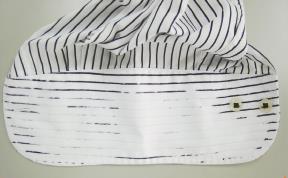 白色地に黒色系のストライプが入ったワイシャツ。前後身頃やカフスの表側など、黒色系のストライプの一部が消失している。また、消失部以外のストライプにも脆化(ぜいか)が生じており、少し摩擦すると細かな粉状になって脱落するような状態になっている。