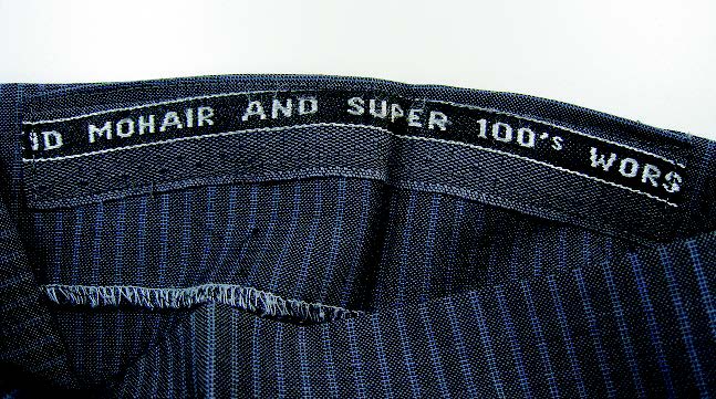※ 組成表示とは別に、裾やウエストの内側部分にモヘヤを使用していることを表記した生地が縫い付けられていることもある