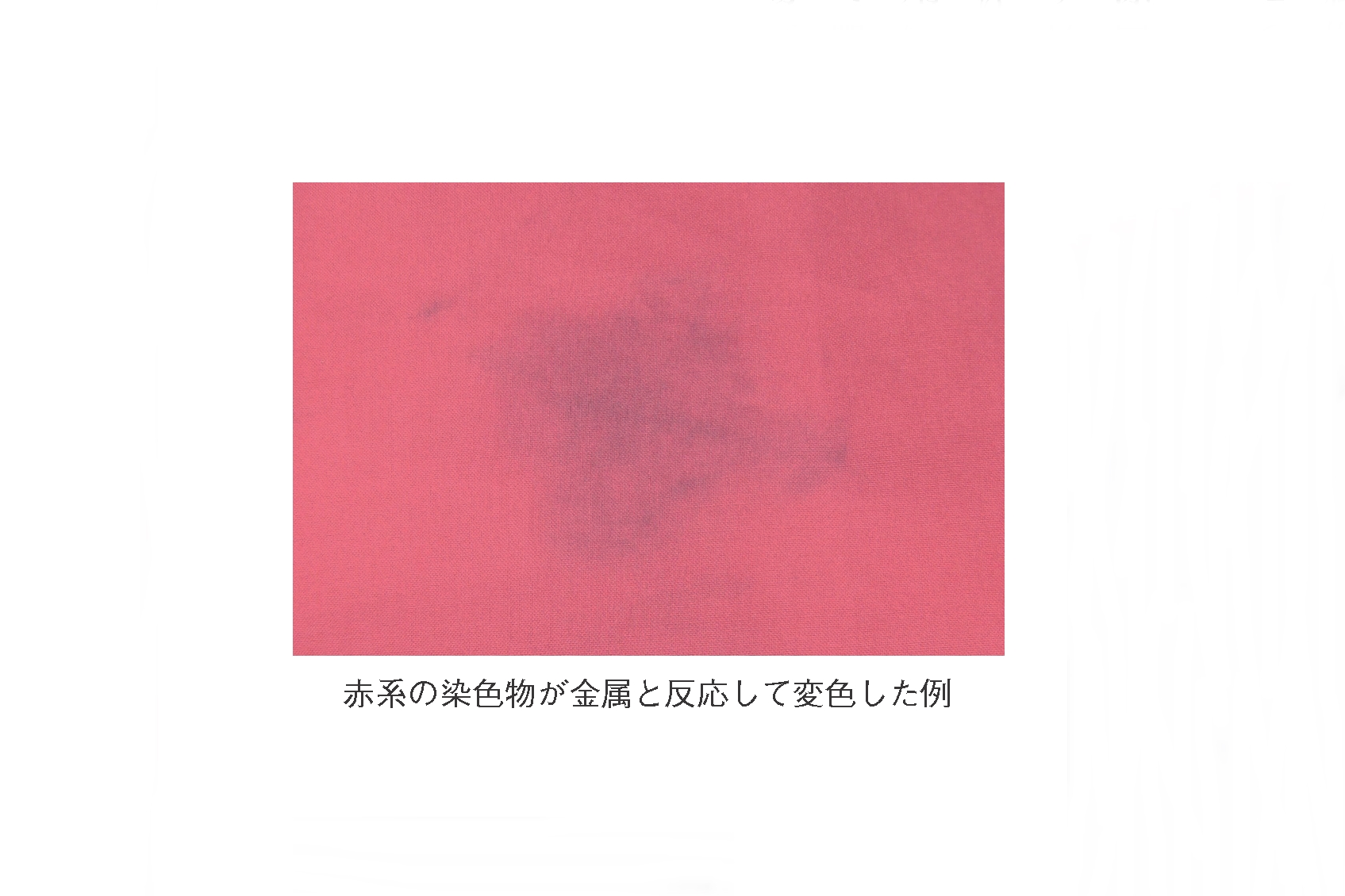 衣類に使われる染料には金属と反応して色が変化するものがあります。